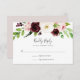 Elégante carte RSVP florale d'aquarelle, elle est composée d'un ensemble de marsala rose vif, de marsala bordeaux et de fleurs d'ivoire accentuées d'un feuillage botanique vert luxuriant. Personnalisez avec votre date RSVP désirée ainsi que le libellé personnalisé accepter et refuser. Conçu pour correspondre à notre collection de mariages Blush Romance et d'événements spéciaux.
