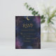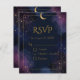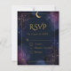 Carte RSVP céleste foncée | Nuages violets et de marine, constellations d'or + Code QR en option Complétez votre suite mariage avec cette carte RSVP céleste foncée, avec des nuages d'aquarelle dans les tons violets et marine, des constellations dorées et des étoiles scintillantes avec une bordure d'or raffinée. Idéal pour les mariages célestes, boho ou élégants en soirée. Ce modèle entièrement personnalisable vous permet de modifier les détails, les dates limites et les sélections de repas de RSVP — en plus d'un code QR optionnel au verso, il est facile pour les invités de répondre en ligne.
