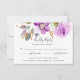 Créée pour compléter notre collection de mariages Lilac Blooms, cette carte RSVP florale douce offre une abondance de fleurs d'aquarelle lilas, rose tendre et gris au-dessus de la date de réponse désirée et de la formulation d'acceptation et de refus personnalisée. Ajoutez votre propre choix d'entrées de repas au bas de la carte.