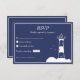 Carte RSVP de mariage bleu Lighthouse Navy