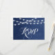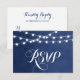Chic moderne mariage d'été RSVP carte réponse design avec des lampes à cordes élégantes et simples accrochées sur le dessus et un mélange classe de polices de script modernes et de calligraphie sur un arrière - plan imprimé fausse aquarelle texture. Un design simple et élégant, parfait pour l'été ! Cliquez sur le bouton CUSTOMISER IT pour customiser les polices, déplacer du texte et créer votre propre conception unique d'invitation unique.