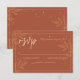 Ce mariage moderne, simpliste, de style boho terreux RSVP dispose de beaux feuilles d'or, et une combinaison de script et de lettrage simpliste. Vous pouvez customiser ceci avec votre propre date de réponse, et la coutume accepter et refuser le libellé.