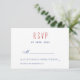 Simple, moderne, minimaliste, typographie Carte Mariage RSVP avec adresse de retour en rouge, bleu et blanc.
