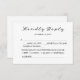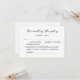 Présentez notre carte RSVP minimaliste de mariage élégant, l'ajout parfait à votre journée spéciale! Conçue avec une touche contemporaine, cette carte élégante vous aidera non seulement à garder une trace de votre liste d'invités, mais aussi à ajouter une touche sophistiquée à votre papeterie mariage. Notre carte RSVP transmet un sentiment de grâce et de formalité, invitant vos amis et votre famille à répondre rapidement. Le magnifique script ajoute une touche de sophistication supplémentaire pour donner le ton à votre mariage. Afin de vous offrir une expérience de planification transparente, nous avons inclus une section de sélection de menu simple mais réfléchie sur notre carte RSVP. Cela permet à vos invités d'indiquer leurs préférences en matière de repas, en s'assurant que le goût de chacun est pris en compte lors de votre grand jour. Réalisée avec soin du détail, notre carte RSVP saisit l'essence de la modernité tout en conservant un charme intemporel. Ses lignes épurées, son design sobre et ses matériaux de qualité en font un joli complément à n'importe quel thème mariage. Ne manquez pas cette occasion d'élever votre papeterie mariage. Commandez vos cartes RSVP dès aujourd'hui et faites le premier pas vers un ensemble mariage poli et cohérent.