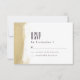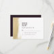 Cette carte RSVP correspond à la suite mariage "brosse dorée", et présente un design minimaliste avec un accent artistique or brossé. La couleur arrière est une aubergine profonde, mais peut être changée à votre goût en utilisant le bouton "personnaliser".