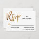 Il s'agit d'une des différentes variantes pour les besoins RSVP de cet ensemble! La distinction de cette suite est due à sa simplicité et à la police de script manuscrite moderne utilisée pour les phrases d'accent. Dans cet article, la police de caractères manuscrite a été utilisée pour créer des graphiques représentant le texte "Rsvp" et "M". Ces images ont été agrémentées d'un effet de feuille d'or lisse et faux métallique. Utilisez les champs modèles pour ajouter vos détails personnels et faire de ce design unique et moderne votre propre. L'arrière - plan solide peut être changé à n'importe quelle couleur que vous préférez. Veuillez communiquer avec toute demande spéciale ou customiser de l'aide. // 105 //