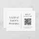 Une carte RSVP élégante et pratique avec un design minimaliste avec des polices classiques sur un arrière - plan blanc. Customisez-le avec vos noms, le site du mariage, le code QR et la date pour vous assurer que les invités confirment leur présence lors de votre journée spéciale.