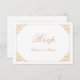 Vintage carte RSVP de mariage musulman blanc. Il s'agit d'une carte de réponse élégante pour les couples musulmans à envoyer à la famille et aux amis pour leur cérémonie Nikah. Il se compose de deux polices de calligraphie en écriture or et d'une bordure de style baroque dans le coin. Vous pouvez modifier la couleur de l'arrière - plan et modifier les polices avec l'option Personnaliser. Des options de type papier sont également disponibles. Fabriqué au magasin HerLineForDesign de Zazzle.
