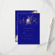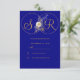 Carte RSVP de mariage pour monogramme bleu marine. Design dispose de magnifiques aquarelles or floral avec des lettres dorées complémentaires. Facile à customiser. Commandez aujourd'hui !