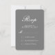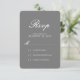Cette carte de réponse rsvp de mariage simple mais classique présente une combinaison élégante de polices sur un arrière - plan gris charbon. Cette conception est intemporelle et fonctionnera avec n'importe quel thème mariage. Customisez la couleur arrière - plan pour correspondre à vos couleurs mariages.