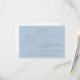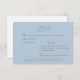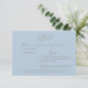 Carte RSVP de mariage bleu ciel. Trois entrées, option. Option de site Web pour RSVP. Police moderne. Texte en or.