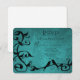 Envoyez à vos invités une carte RSVP de mariage Turquoise simple et élégante avec votre invitation. Le design de la carte RSVP comprend un arrière - plan grunge turquoise orné d'une vigne feuillue et de deux tourterelles au repos. Personnalisez avec la date de réponse et le choix du menu pour la réception. Papier à lettres mariage supplémentaire disponible avec cette conception aussi. Vous avez besoin d'aide pour la personnalisation ? Merci de me contacter et je travaillerai sur le libellé et les détails pour adapter ce design à votre satisfaction.