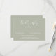 La carte de boîtier RSVP faire-part de mariage présente un design typographique élégant, moderne et propre avec un jeu de couleurs vert sage. Cette carte de réponse est prête à vous permettre de customiser avec les détails de votre journée spéciale. Veuillez naviguer dans la suite de Mariage minimal Sage Green Elegant pour rechercher des articles de papeterie correspondants.
