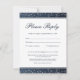 Denim et Diamonds répondent carte RSVP avec un magnifique arrière - plan denim avec des diamants élégants et de beaux détails typographiques. Veuillez me contacter à claudia@claudiaowen.com si vous souhaitez customiser cette carte. Veuillez visiter ma boutique Zazzle http://www.zazzle.com/claudiaowenshop Design par claudiaowen.com