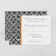Cette carte RSVP noire, blanche et orange correspond à l'invitation de mariage présentée ci-dessous. Le texte et le type de papier sont personnalisables. Si vous avez besoin d'autres articles assortis, veuillez envoyer votre demande par courriel à niteowlstudio@gmail.com.