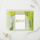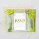 Trouvez la carte RSVP parfaite chez WeddingsbyRhoadie aujourd'hui. Ce design vert clair présente un adorable design floral rustique avec RSVP écrit en texte vert à l'intérieur de l'image d'un cadre photo. Le dos de la carte est en beige clair avec une police en vert. Commandez votre RSVP aujourd'hui. RSVP Design : WeddingsbyRhoadie Illustration du thème de l'automne devant : Oberholster Venita