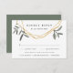 Conçue pour coordonner avec notre collection de mariages en feuille d'olive, cette carte RSVP botanique fraîche et au choix de repas comprend des feuillages de branche d'olivier et des éléments géométriques dorés qui surplombent la date de réponse désirée et une formulation personnalisée d'acceptation et de déclin. Demandez aux clients d'indiquer leur choix d'entrée à l'avance en remplissant vos choix de repas sur la dernière ligne.