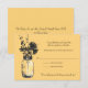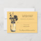 Parfait pour un mariage champêtre ou peut-être que vous aimez simplement les pots Mason ! Vieux pot Mason vintage suspendu à un crochet avec des fleurs sauvages champêtres. Un merveilleux fond jaune avec un dessin noir d'un pot Mason rempli de fleurs sauvages champêtres. Si vous avez des questions sur ce design ou si vous souhaitez une modification de couleur, veuillez m'envoyer un e-mail à paula@labellarue.com. Vérifiez également les cartons d'invitation de mariage PRINCIPAL, de réception et de placement des invités pour assortir ! Cette carte de réponse RSVP de 3,5x5 est configurée comme une carte postale. Il suffit d'ajouter votre adresse de retour au verso.