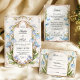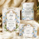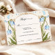 Gracieuse et intemporelle, cette carte RSVP présente des fleurs bleues douces délicatement encadrées dans une frontière Art Nouveau ornée aux accents dorés raffinés. Inspiré par la nature et l'art vintage, il est le complément parfait aux mariages romantiques, de jardin ou de contes de fées. Les couples peuvent facilement personnaliser le modèle pour y inclure jusqu'à trois options de repas, offrant aux clients une belle façon de faire leurs choix tout en gardant votre planification organisée. Ce design fait partie d’une suite de coordination et s’associe parfaitement à l’invitation de la "Collection Whimsy". N’hésitez pas à customiser le libellé sans effort avec l’outil de design convivial de Zazzle.