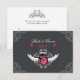 Carte RSVP non conventionnelle à envoyer avec la faire-part de mariage correspondante, sur rose fuchsia, blanc et gris avec un thème rock and roll avec illustration de guitares électriques, ailes et élégants ornements baroques vintages. Personnalisez-le avec vos propres informations ou cliquez sur "Customiser" si vous avez besoin de modifier la mise en page, les couleurs et le texte ou de choisir une autre taille d'invitation. Des invitations de mariage et des enveloppes assorties sont également disponibles.