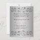 Cette carte RSVP florale gris et noir argenté possède un ruban et un arc IMPRIMÉS avec un médaillon LOOK centre gravé FAUX qui correspond à l'invitation du 25e anniversaire du mariage présentée ci-dessous. Si vous avez besoin d'autres articles correspondants, veuillez envoyer votre demande par courriel à niteowlstudio@gmail.com. Les éléments correspondants existants dans cette conception sont présentés ci-dessous.