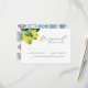 Améliorez l'anticipation de votre journée spéciale avec notre carte de réponse de charme, soigneusement conçu pour compléter notre ensemble de papeterie mariage italien. Chaque carte offre aux clients une façon transparente de fournir leurs informations de réponse, le tout face à une charmante bordure supérieure de citrons aquarelles. L'envers dévoile un motif de tuiles Amalfi captivant dans des tons bleu et rouille apaisants, incarnant à la fois le charme rustique et l'élégance raffinée. Idéal pour les mariages de destination ou toute célébration à la recherche d'une touche d'élégance italienne. Découvrez la suite complète de papeterie mariage correspondante à www.zazzle.com/dotellabelle, où chaque détail se tisse pour créer votre histoire mariage parfaite.