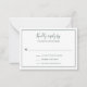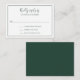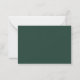 Mini carte RSVP mariage vert forêt simple avec "réponse gentille par" dans une police de script manuscrite élégante et vos options de réponse entourée d'une mince bordure. La disposition classique et traditionnelle fait de cette carte RSVP un choix idéal pour une suite de faire-part de mariage formelle.