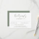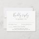 La carte de boîtier faire-part de mariage RSVP présente un design typographique élégant, moderne et propre, avec un jeu de couleurs vert olive. Cette carte de réponse est prête à vous permettre de customiser avec les détails de votre journée spéciale. Veuillez consulter la suite de mariage élégant et fleuri vert olive pour obtenir des articles de papeterie correspondants.