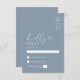 Créez une esthétique moderne sans effort pour votre journée spéciale avec notre carte RSVP minimaliste Dusty Blue Wedding. Avec ses initiales personnalisées dans le coin supérieur gauche, cette carte sophistiquée évoque un charme intemporel et élégant qui fera de votre mariage un souvenir. Avec un design épuré et épuré de bleu poussiéreux, cette carte RSVP classique apportera une touche d'élégance moderne à votre journée spéciale.