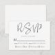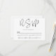Réunissez les réponses de vos invités avec style avec cette carte RSVP de mariage noir et blanc. Dotée d'un titre "RSVP" audacieux, d'une disposition classique et d'options de choix de repas, cette carte est parfaite pour les mariages modernes, minimalistes ou formels. Customisez le libellé et la date qui correspondent à vos besoins, que vous soyez l’hôte d’une célébration traditionnelle ou d’une affaire contemporaine. Conçu pour s'associer harmonieusement aux invitations noires et blanches et à la papeterie. Un complément pratique et poli à votre suite mariage.