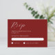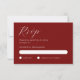 Carte RSVP noire et rouge chic. Doté d'un arrière - plan rouge vif sur le devant avec le texte blanc, cette carte est conçue pour séduire. L'envers contraste magnifiquement avec un arrière - plan noir élégant. Le design minimaliste et frappant est parfait pour les couples qui veulent faire un impact mémorable. De plus, le texte est entièrement personnalisable, vous permettant de personnaliser chaque détail pour correspondre à votre style de mariage unique.