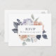 Cette carte RSVP à la carte simple et rustique est parfaite pour votre mariage vintage et élégant. Il est conçu avec des fleurs roses classiques, des pivoines rousses simplistes et des hydrangées pourpres poussiéreuses. Le tout accompagné de touches d'eucalyptus vert et de feuilles de marine. Avec toutes ces fleurs d'aquarelle claires et colorées, vous êtes sûr d'avoir l'impression que vous voulez.