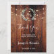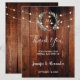 Rustic wood watercolor leaves, string of lights, Thank you, monogrammed, wedding card.