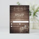 Vous avez ce thème rustique / mariage campagnard extérieur? Belles cartes RSVP de mariage avec des lumières scintillantes et deux jarres de maçon avec des coeurs en faux diamant. Arrière - plan de grange en panneau de bois. La police, la taille et la couleur du texte peuvent être modifiées. Le dos de la carte porte à la fois le nom de la mariée et celui du marié. Contactez le concepteur pour obtenir de l'aide.