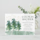 Cette invitation rustique mais moderne à la douche en couple de pins d'aquarelle est parfaite pour tout mariage qui sera placé dans la montagne ou la forêt - en toute saison - hiver, printemps, été ou automne. Avec des pins majestueux dans les tons vert de la forêt et une police tendance mais classique dans une teinte coordonnée de vert, c'est un beau choix pour votre douche. C'est élégant et chic mais dégage une atmosphère rustique et boisée. Les polices modernes sont propres et facilitent la lecture du texte à l'oeil. Pour voir à quel point vos invitations seront magnifiques, sélectionnez Personnalisez ce modèle et tapez vos informations de douche. En quelques secondes, vous pouvez voir à quel point vos invitations uniques seront étonnantes.