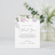 Cette carte de réception lilas rustique vous remercie est parfaite pour un mariage de printemps ou d'été. Le design floral romantique et élégant présente des fleurs sauvages lilas violets d'aquarelle aux allures de jardin boho. Placez ces cartes à la table de chaque invité à la réception de votre mariage. Personnalisez la carte avec vos noms et un message de remerciement spécial.