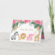 Safari bébé / carte de remerciements animal jungle - parfait pour les anniversaires de safari fille ou douches à thème jungle. Mignons singes, éléphants, lions, zèbres et girafes décorent la carte avec des fleurs de jungle rose, des feuilles verts et des fougères. Le motif de fleurs est répété à l'intérieur. Ajoutez facilement votre propre texte à l'avant et à l'intérieur.
