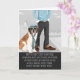 Ce Saint Bernard doux, aimant et tolérant est plongé dans un cravate et un casquette, tous deux en bleu pour égaler la chemise de papa sur cette carte de Fête des pères amusante pour le père St. Bernard.