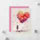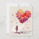 Une carte de Saint Valentin avec des ballons rouges. Le devant de la carte montre une jeune fille tenant des ballons de Saint-Valentin. Le dos dit : Coeurs à ma Saint Valentin. Il s'agit d'une carte plate avec de l'espace sur le côté rose pour écrire votre message.