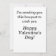 Carte de la Saint-Valentin avec un bouquet de fleurs en forme de cœurs. Sur le devant de la carte, deux mains sont représentées. L'une donne un bouquet de fleurs aux pétales en forme de cœur -- l'autre reçoit le bouquet. Le message à l'intérieur dit : "Je vous envoie ce bouquet pour vous souhaiter un joyeux jour de la Saint-Valentin." C'est une expression de vœux de Saint-Valentin qui peut être utilisée dans de nombreuses situations. Personnalisez-la si vous le souhaitez... Vous pouvez remplacer le texte par votre propre message ou supprimer le texte et utiliser l'espace pour écrire un message de jour de la Saint-Valentin plus long.