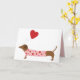 Ce petit teckel tient son ballon et est prêt à célébrer la Saint-Valentin. Personnalisez le message intérieur pour tous vos Saint-Valentin.