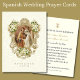 Avec une belle image catholique traditionnelle représentant les fiançailles de Marie et Joseph avec une bordure dorée décorative ornée de fleurs blanches et un fond de dentelle blanche. Une prière en espagnol est au verso pour les mariés. Tout le texte et les polices peuvent être modifiés.