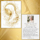 Cette élégante carte de prière commémorative funéraire catholique présente une image dorée sereine de la Sainte Vierge Marie entourée d'une décoration florale offrant un bel hommage à un être cher disparu. L'envers est personnalisable avec une photo personnelle et une prière touchante pour l'âme du défunt, invoquant l'intercession de la Vierge Marie. Cette carte sert de garde durable pour la famille et les amis, apportant confort et espoir par la miséricorde de Dieu. Idéales pour les funérailles catholiques et les services de commémoration, ces cartes de prière sont un moyen sincère d'honorer la vie et la foi de votre être cher.