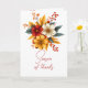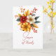 Célébrez l'esprit de gratitude avec cette carte magnifiquement illustrée, mettant en vedette de riches fleurs d'automne, des feuilles dorées et des baies chaudes. L'élégante écriture « Saison de remerciements » donne un ton sincère, tandis que l'intérieur vierge vous permet de créer votre propre message personnel. Une façon charmante d'honorer la saison et ceux que vous chérissez.