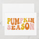 Ce design automnal vibrant et joyeux célèbre la saison de la citrouille tant aimée avec une typographie audacieuse et rétro. Le texte est disposé de manière ludique et ondulée, chaque lettre étant remplie d'une palette chaude et automnale qui comprend des nuances d'orange, de jaune et de rose. Les lettres épaisses et sinueuses donnent au design une sensation amusante et nostalgique, rappelant les styles classiques des années 1970. L'effet global est vivant et invitant, capturant parfaitement l'excitation et la convivialité qui accompagnent la saison automnale.