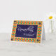 Une salutation de Ramadhan dans le lettrage vert sur un arrière - plan bleu-foncé, entouré par une frontière fleurie basée sur un motif islamique traditionnel sur les étoiles de verrouillage avec des lunes dans chaque coin. Le ce richement coloré salutation du design de carte inclut la description en peinture de gouache d'or et est une conception originale, peinte à la main par Judy Adamson. L'intérieur est vide pour votre propre message. Voir la tasse également assortie dans le même style.