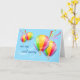 Vers le haut de, vers le haut de et loin, c'est votre jour spécial ! Joyeux anniversaire ! Ballons à air chauds colorés, flammes avec des remous opaques légers.