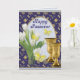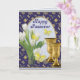 Les tulipes et les papillons accentuent cette conception de pâque qui comporte deux calices d'or avec l'étoile de David sur eux. L'arrière - plan a d'autres conceptions telles que le torah dans la copie. Le texte indique que la pâque heureuse et vous ajoutent votre texte fait sur commande à l'intérieur.