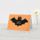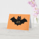 Carte de voeux éffrayante de chauve-souris Halloween sur arrière - plan violet clair. Le texte peut être personnalisé. Un message de bienvenue Bat suggère de suivre votre intuition !