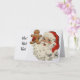 Cute picture of Santa holding a gingerbread man, is featured on this Christmas greeting card. Front of card reads, "Ho! Ho! Ho!" and inside of the card reads, "It's that time of the year to get out the baking gear! And make Santa's visit a yummy one. Merry Christmas to you and your family". A sweet card to give family and friends for Christmas!